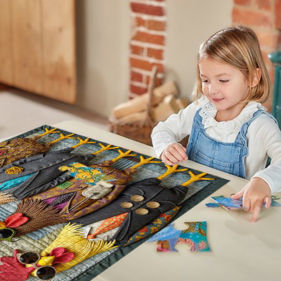 Right now, the Puzzloom™ Runway Roosters Puzzle is available at an exclusive holiday discount, making it easier than ever to bring this creative art piece home!